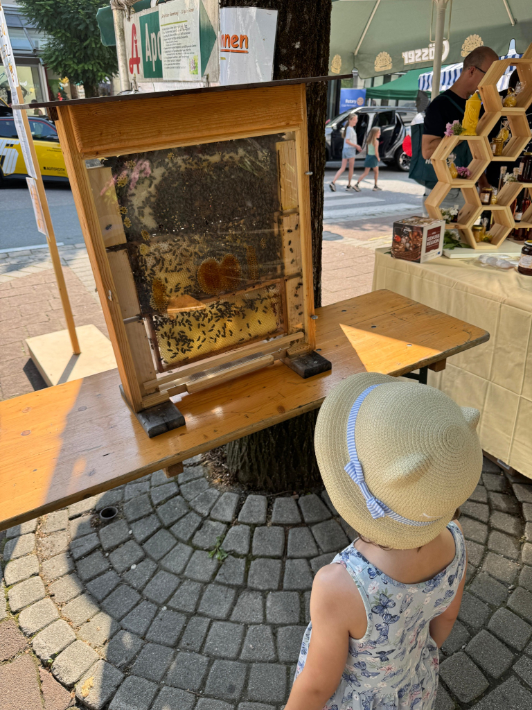 An vielen Ständen gab es Kostproben verschiedenster Honige – von blumig-mild bis kräftig-würzig – sowie Honigeis für Schleckermäuler. Auch Imkereibedarf in großer Auswahl konnte erworben werden. Für die jüngsten Besucher gab es eine Hüpfburg und verschiedene Tombolas lockten mit tollen Preisen.